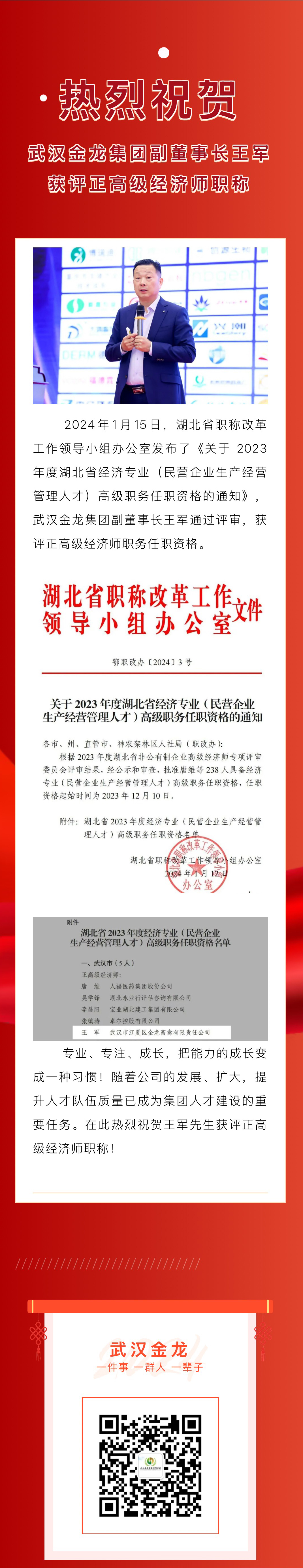 熱烈祝賀|武漢金龍集團(tuán)副董事長王軍獲評(píng)正高級(jí)經(jīng)濟(jì)師職稱
